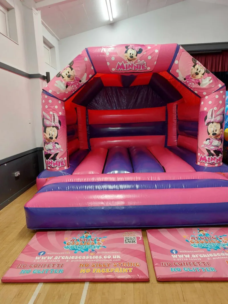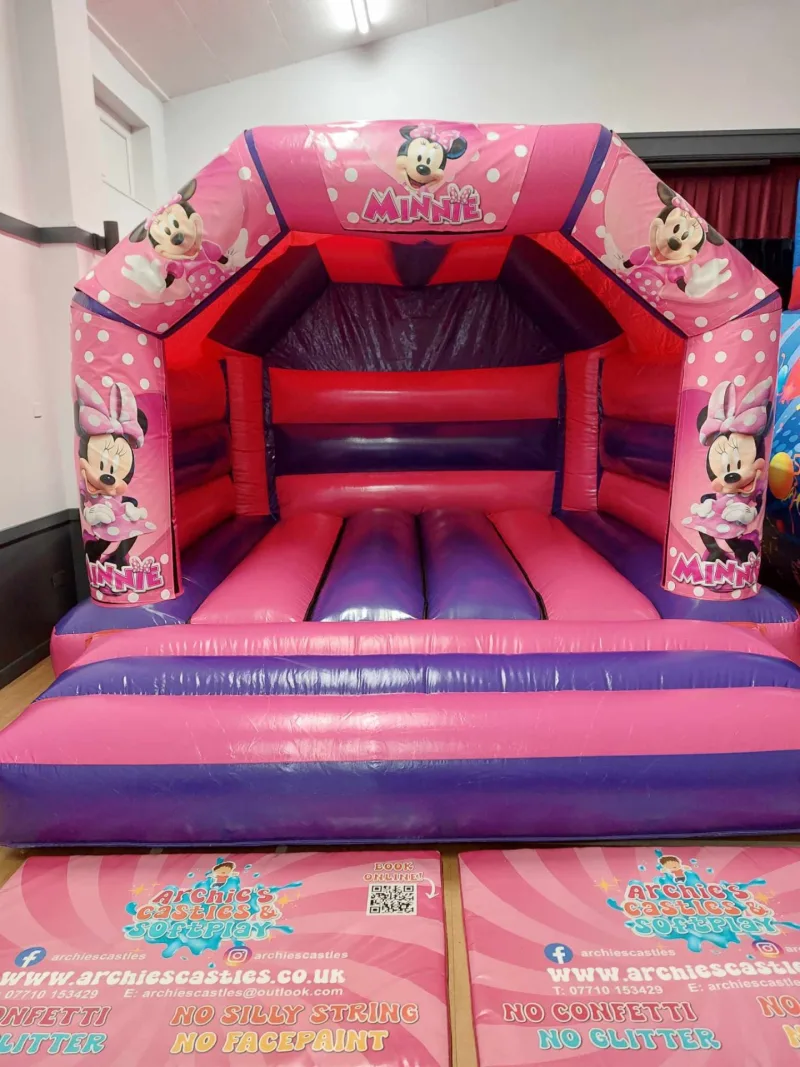 Unleash the magic with our 15X12FT Pink and Purple Minnie Mouse Theme children's bouncy castles, designed to captivate the imaginations of young adventurers. It's the perfect addition to any event, especially for children's bouncy castle enthusiasts. Available for hire in Medway & surroundng areas, this enchanting inflatable promises hours of whimsical fun.