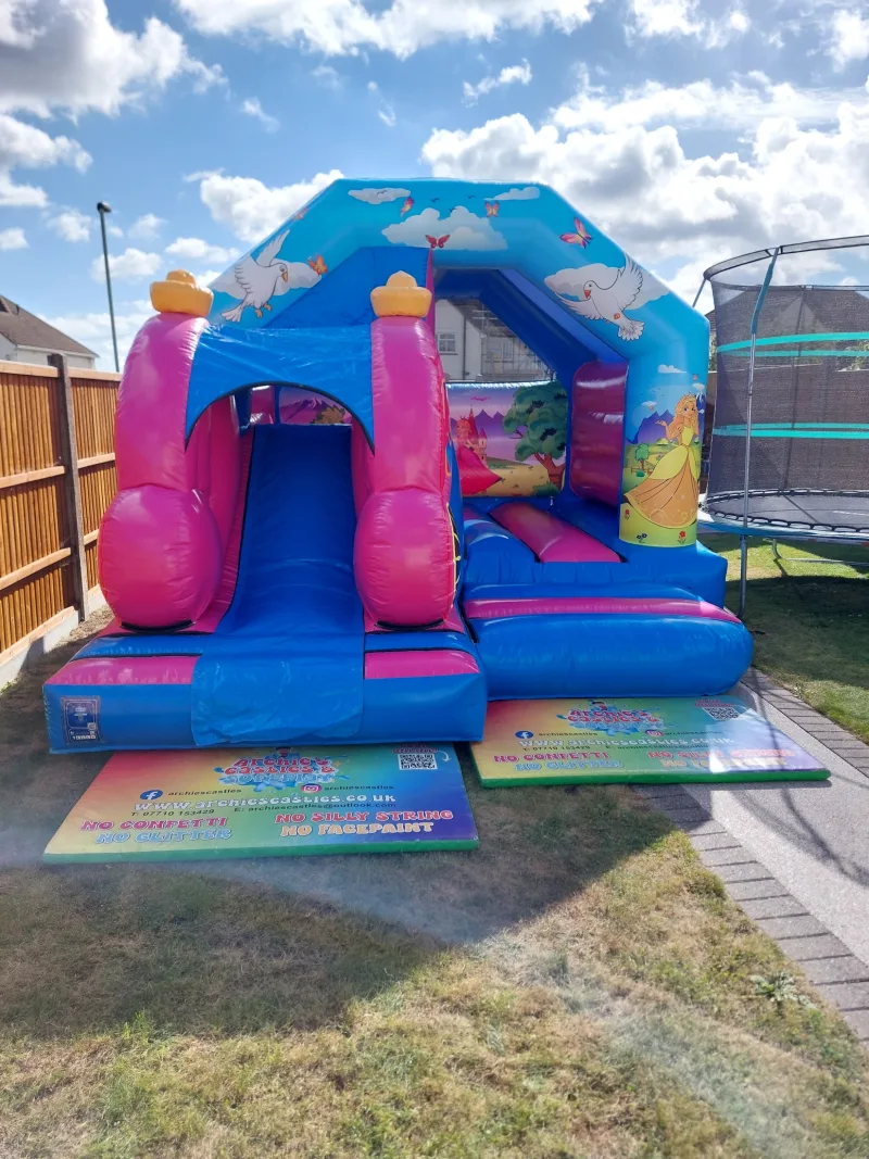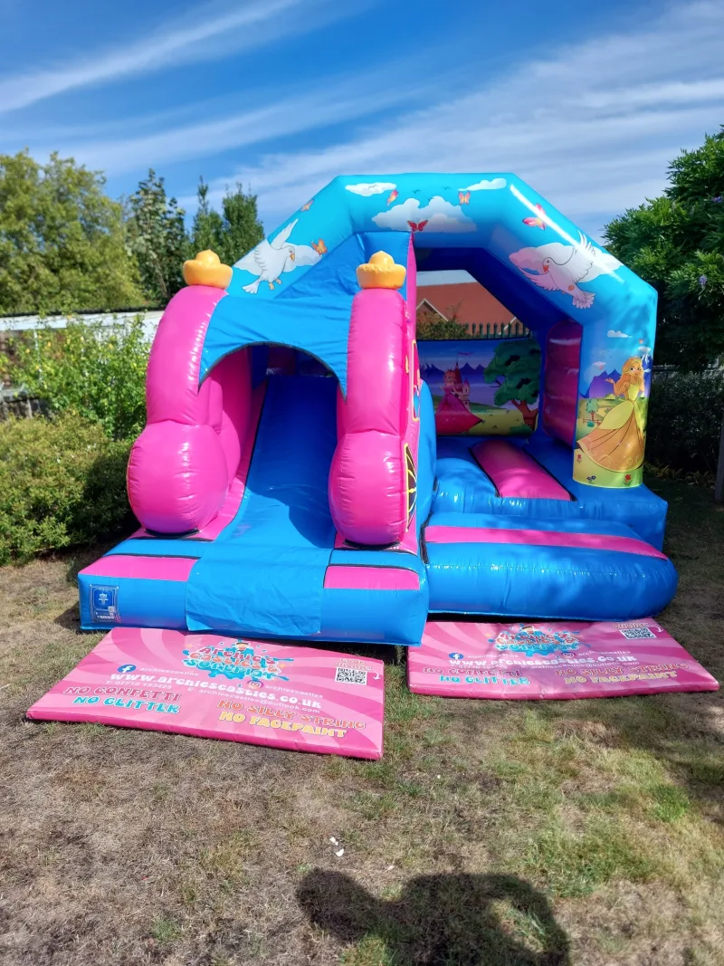 Our inflatable slide hire service in Medway, Kent, is easy and affordable. Make your event unforgettable with the Princess Carriage Castle and Slide Combi. Book now to have a magical centrepiece for your celebration! Let the laughter and excitement begin!
